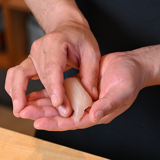 素材の旨みと職人の技が響き合う、Ebisuの寿司。その日選び抜いた旬の魚を、店主が心を込めて一貫ずつ丁寧に握ります。